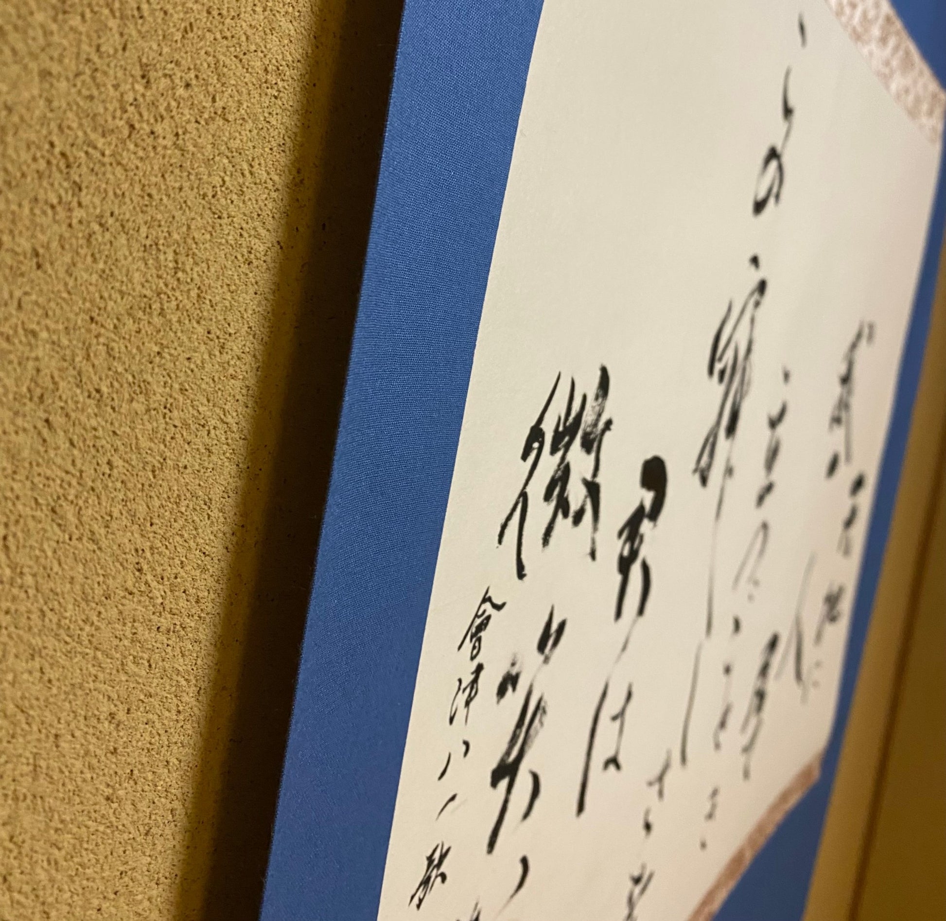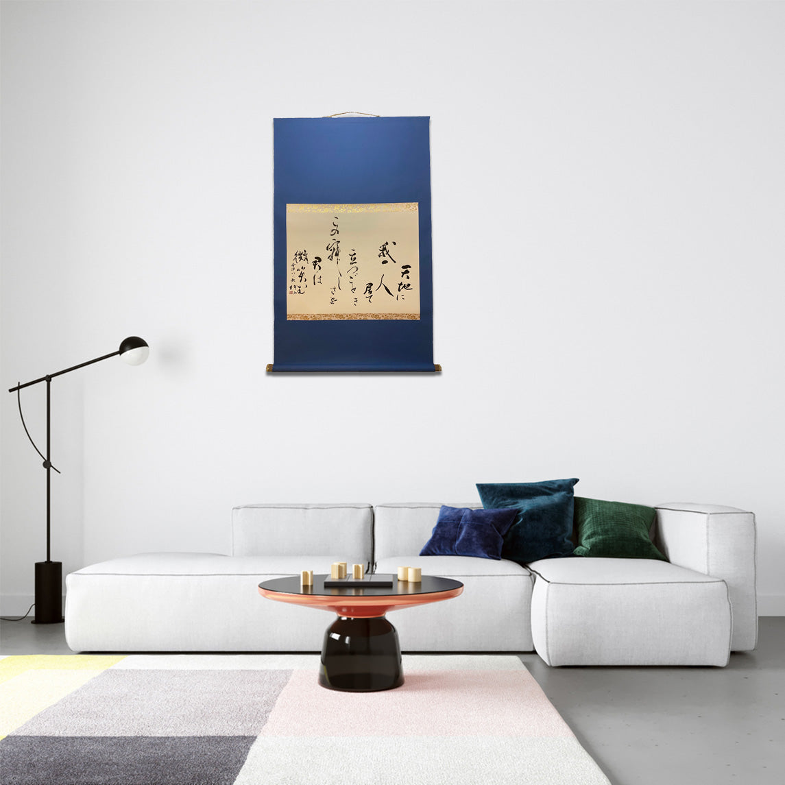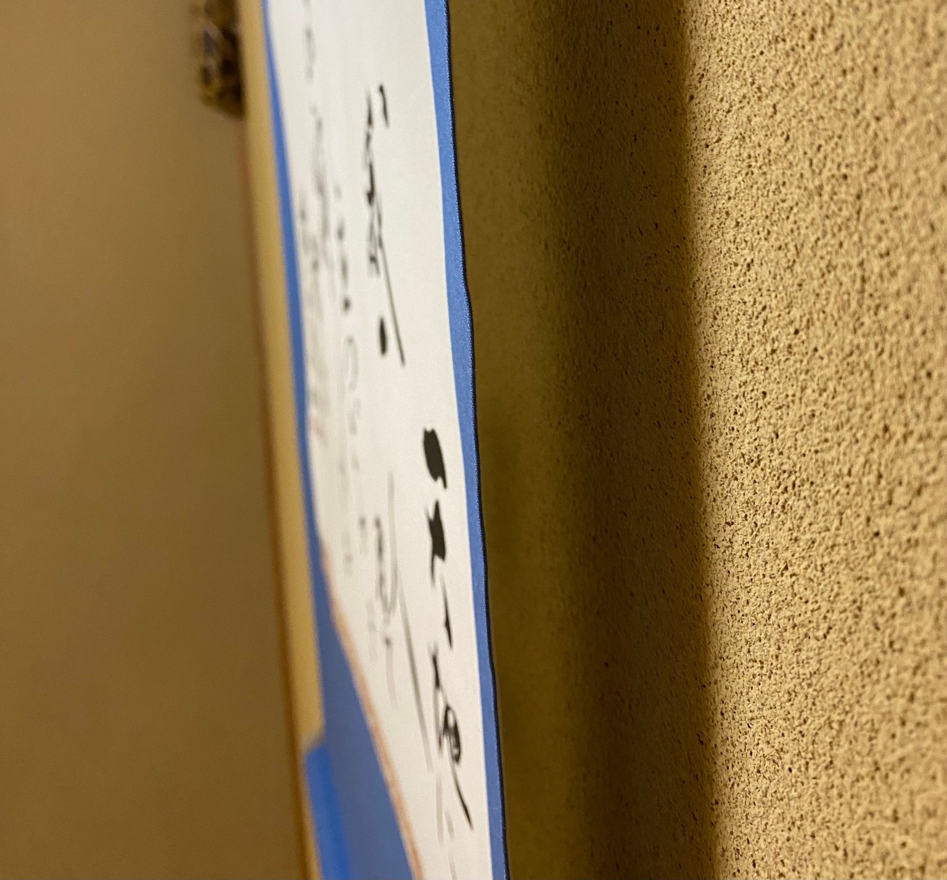 書かれている言葉を読むのも良し、線や散らし書きの空間を楽しむのも良し。色合いや雰囲気が気にいるも良し。お好きな場所に掛け軸も是非お気軽に飾ってみてくださいね。