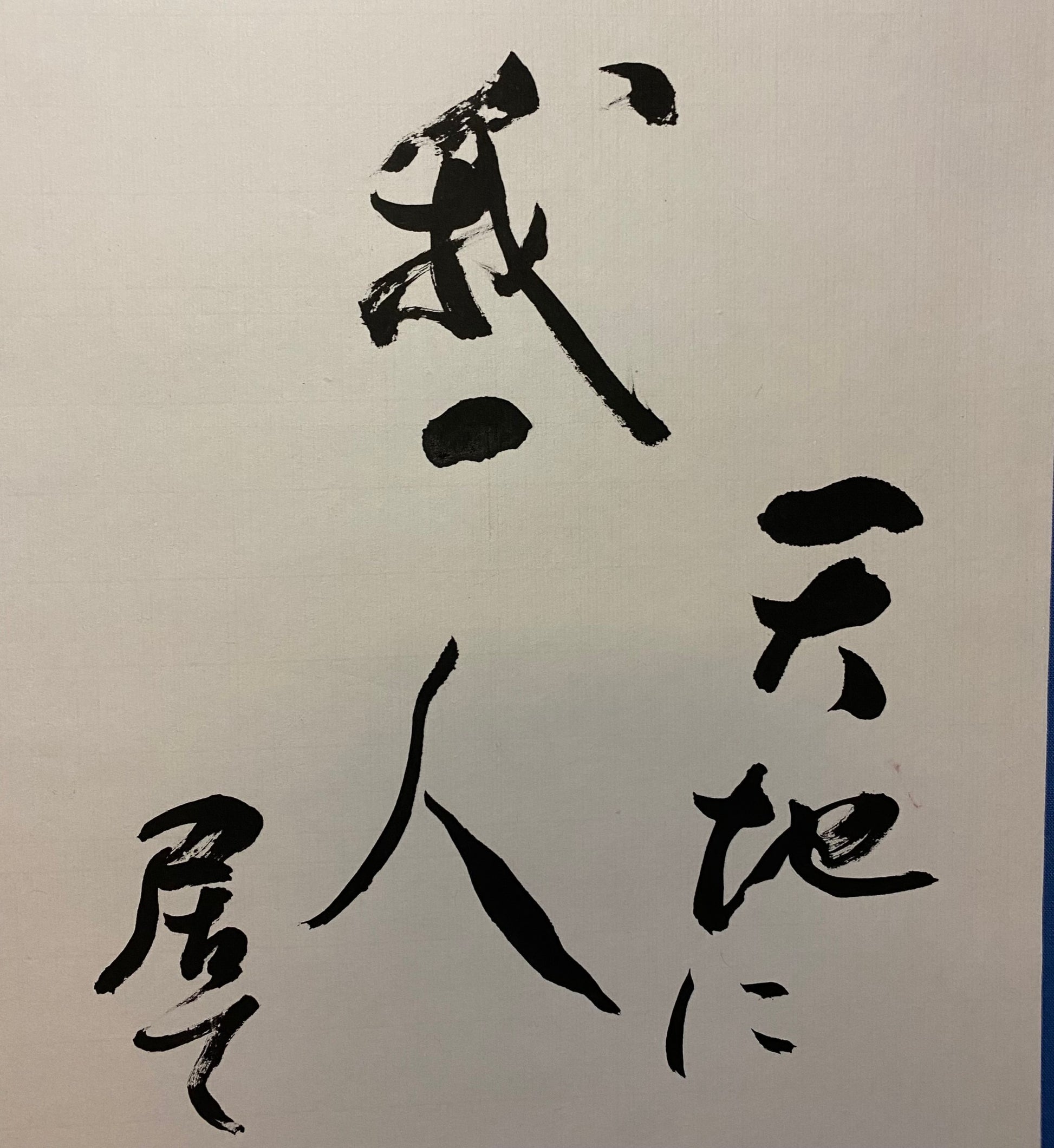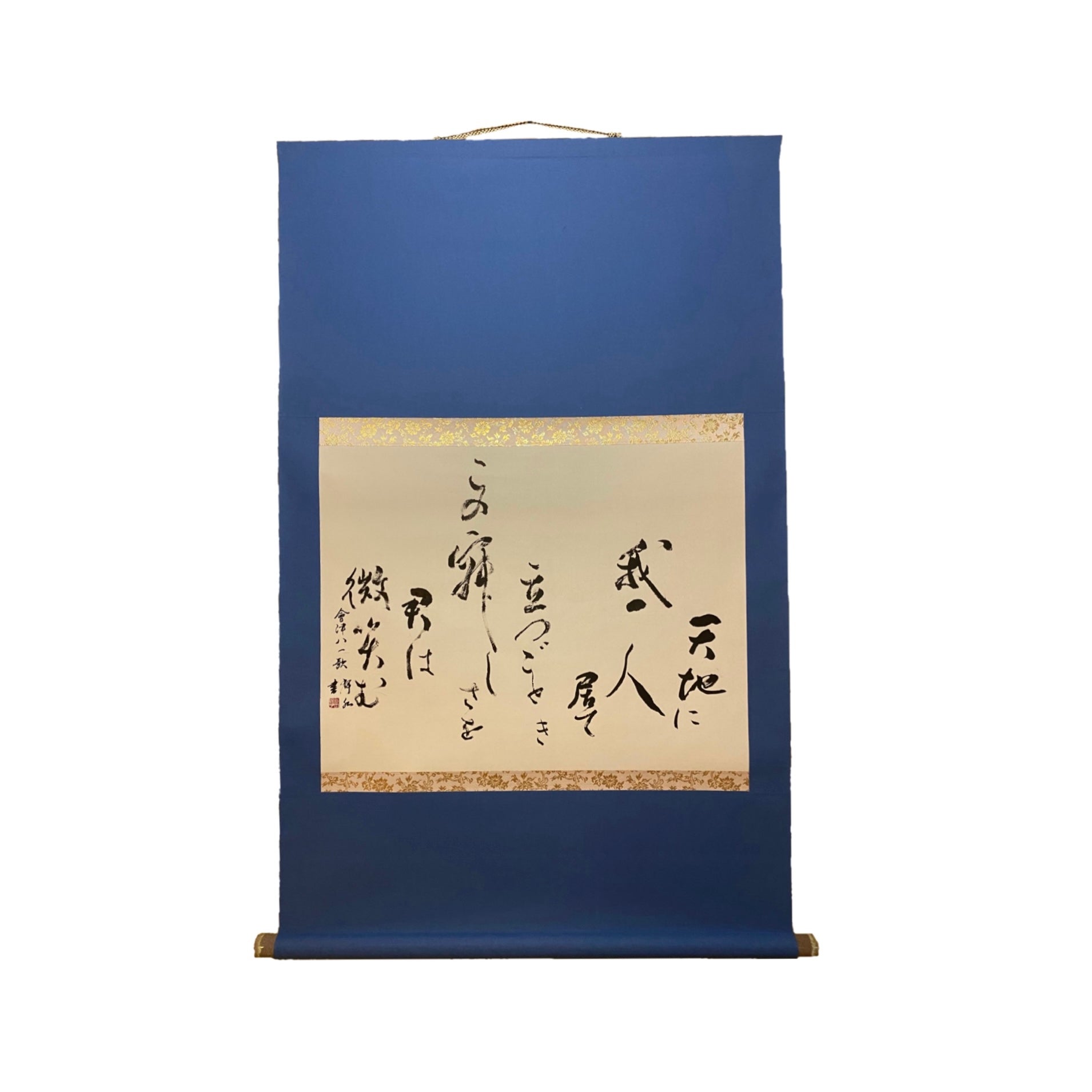 【SIZE】H10200×W640×D2mm(作品部分 410×540mm) 【WEIGHT】485g 【作品材料】墨、画仙紙 【作品ストーリー】 天地(あめつち)に我1一人いてたつごとき、この寂しさを君は微笑む 【作品のポイント】【寂】の褐筆の美しさをお楽しみ頂きたいです。 |