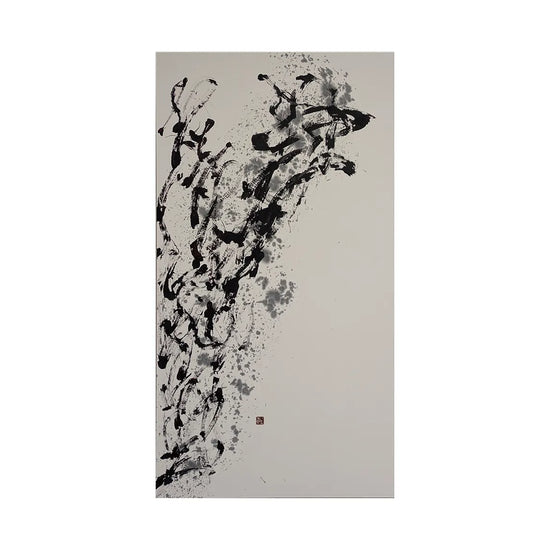 【SIZE】H700mm✕W500mm✕D30mm 【WEIGHT】5kg 【作品材料】墨、青墨、アクリル、和紙 【作品ストーリー】 【作品の見どころ】 |