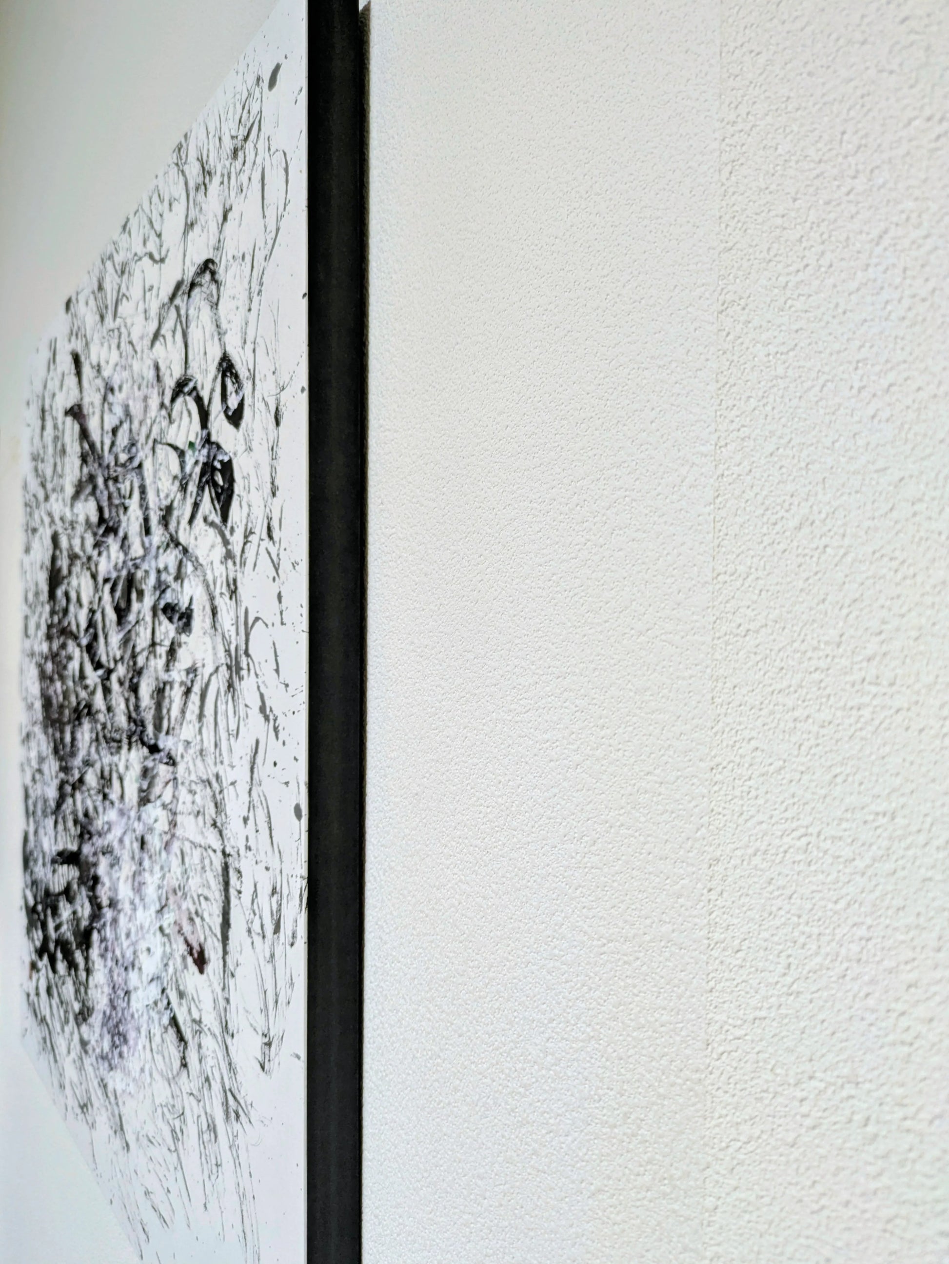 【SIZE】H600mm✕W600mm✕D30mm 【WEIGHT】5kg 【作品材料】墨、青墨、アクリル、和紙 【作品ストーリー】 【作品の見どころ】 |