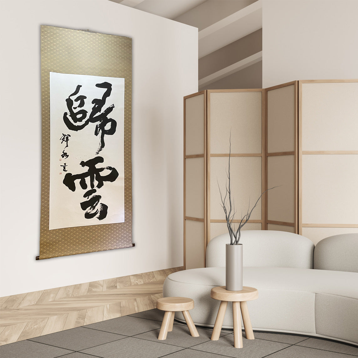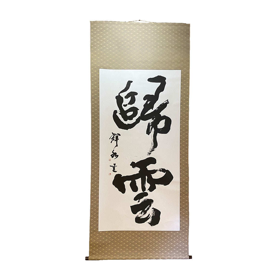 Comment from staff The borderline between black and white is beautiful. This calligraphy is very dynamic work but also you would feel softness from the Chinese characters drawn with curves and a beige mounting surrounding the calligraphy . Please have a think about trying to own large calligraphy! And enjoy putting this in your favourite space. |