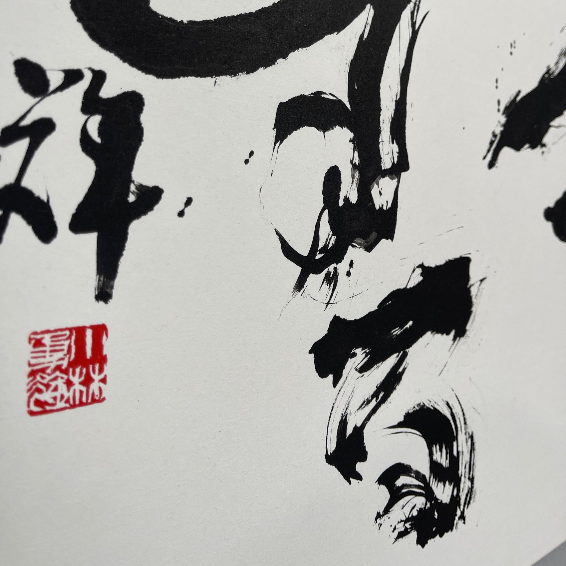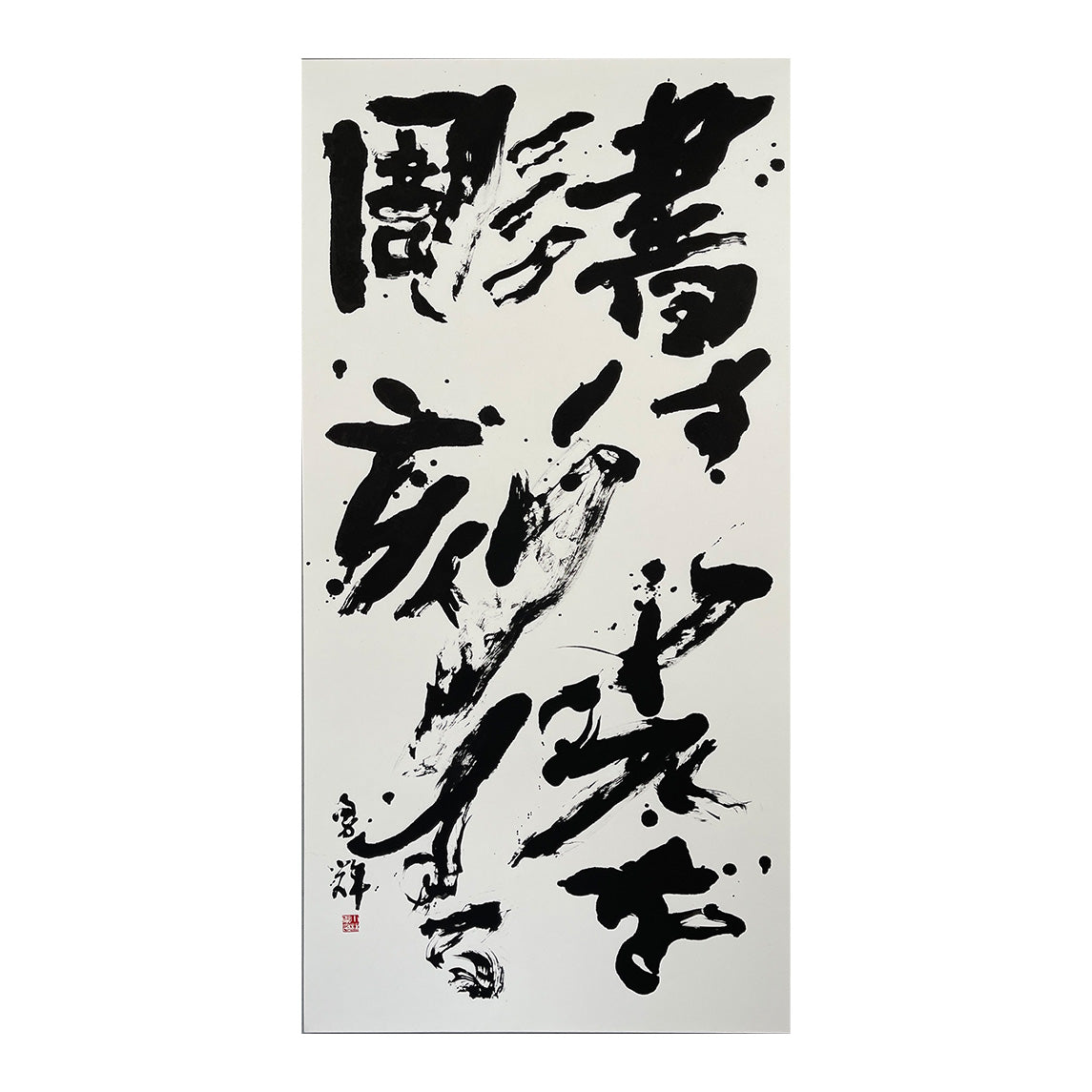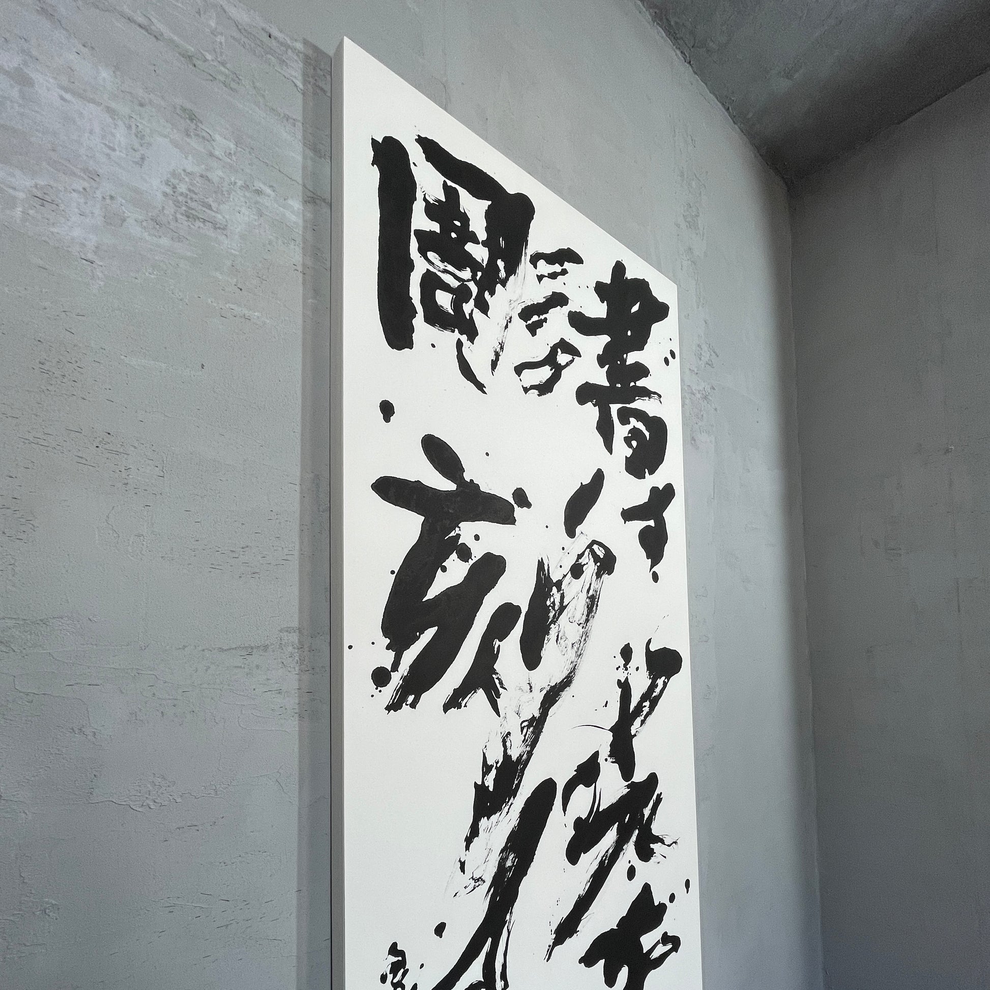 【SIZE】H1382mm×W700mm×30mm 【WEIGHT】1000g 【作品材料】画仙紙 菜種油煙墨 【作品ストーリー】 "Shoha hikariwo chokoku suru”---Shodo carves brightness. I drew lines imagining to carve brightness on paper. I attempted to express the brightness of lifes that exists in each creature in this shodo. 【作品のポイント】 I am working on creating shodo, naming series "ideo-poem shodo"(象詩書) that three elements, poems, shodo, and shapes are united into one. This is one of the new styles of my works that I put the wish for things that do not have physical shapes to have an appearance through the process of making it. Inked spaces and uninked white spaces unexpectedly made harmonies, this shodo is given the birth. I would like you to find the image of carved brightness by the ink in this piece of work. |