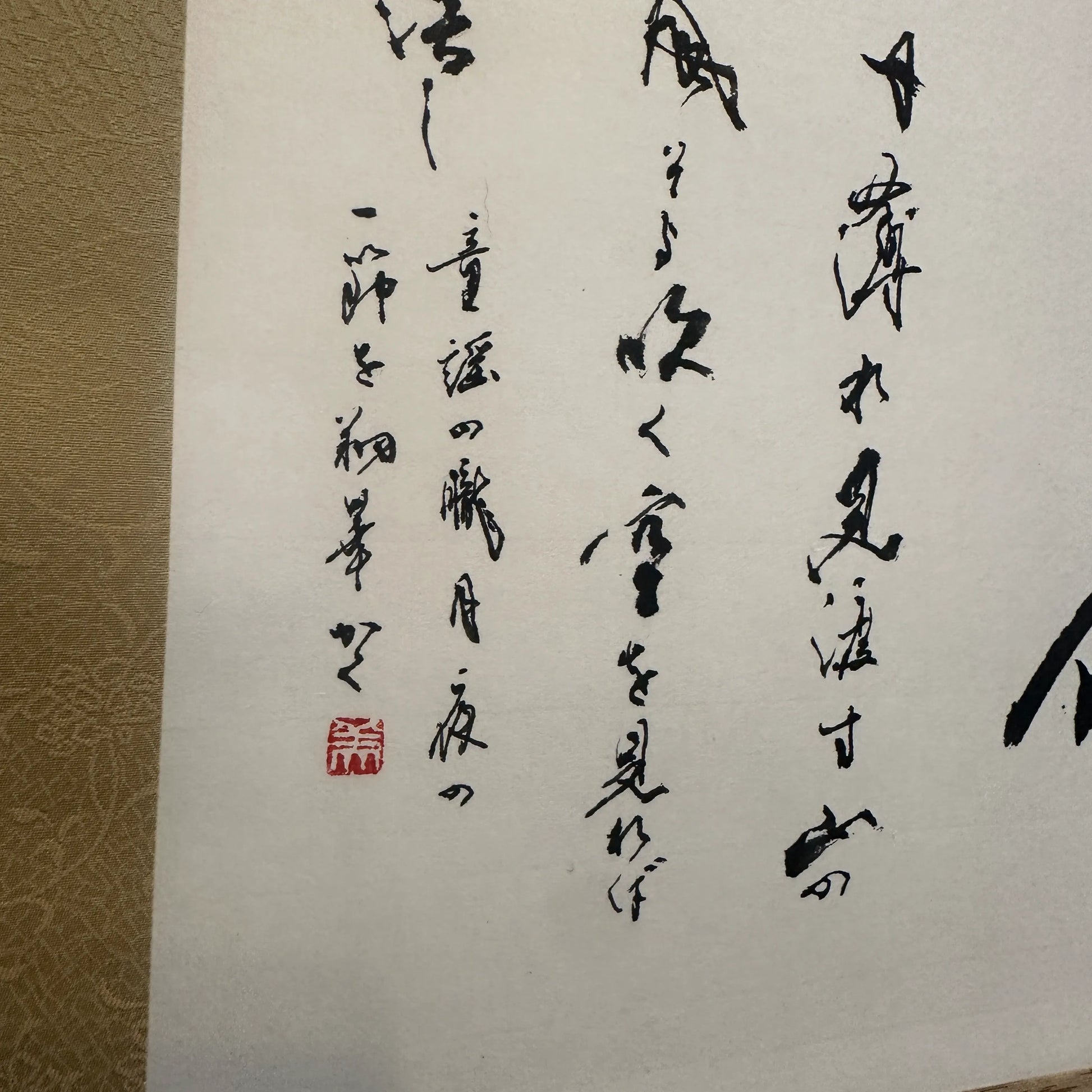 作品を見た瞬間、月を思い浮かべていませんか?歌からその情景が浮かぶ、風情のある作品です。お部屋にも馴染みやすい色合いです。是非迎えてみてくださいね。
