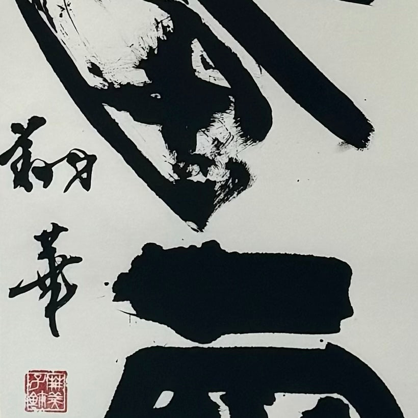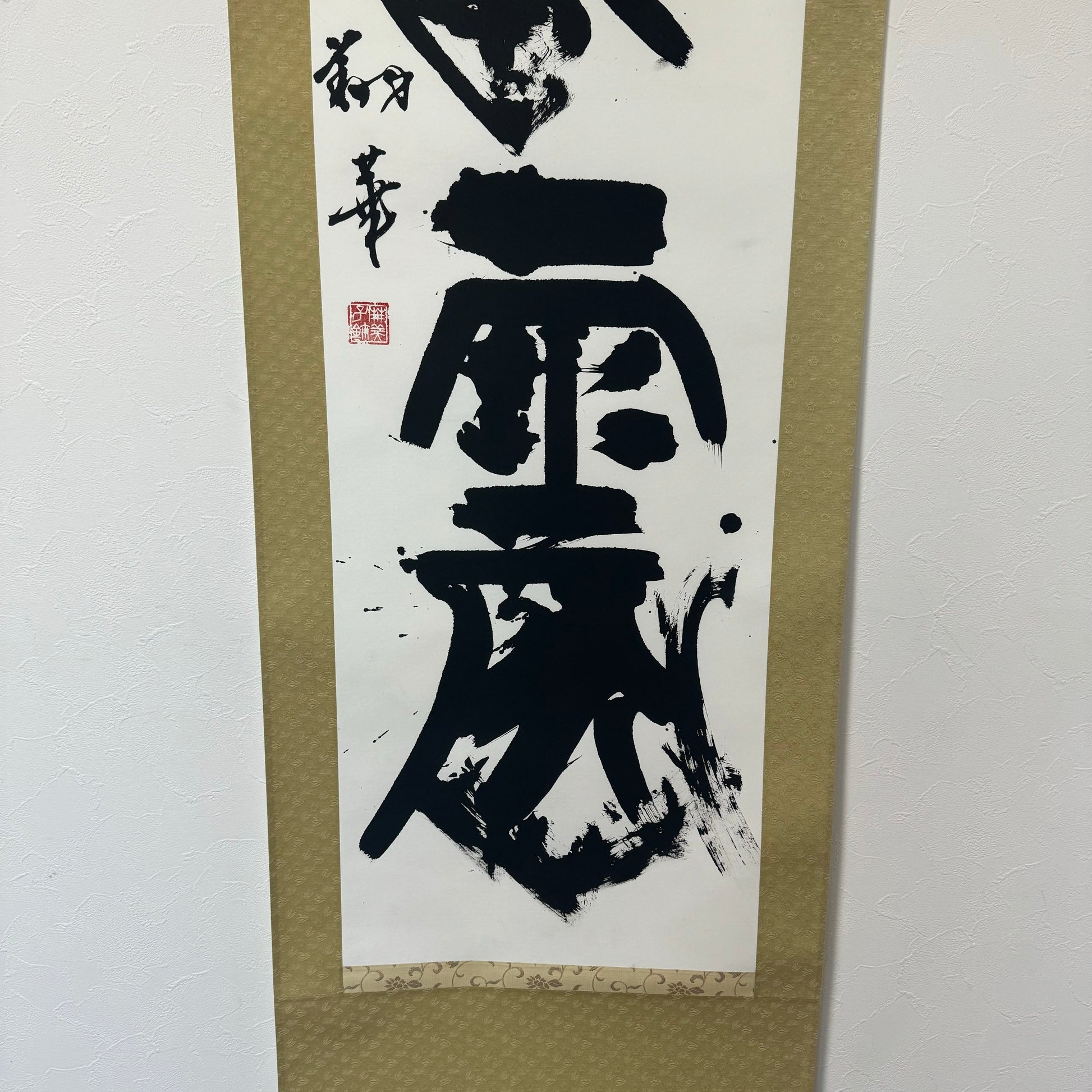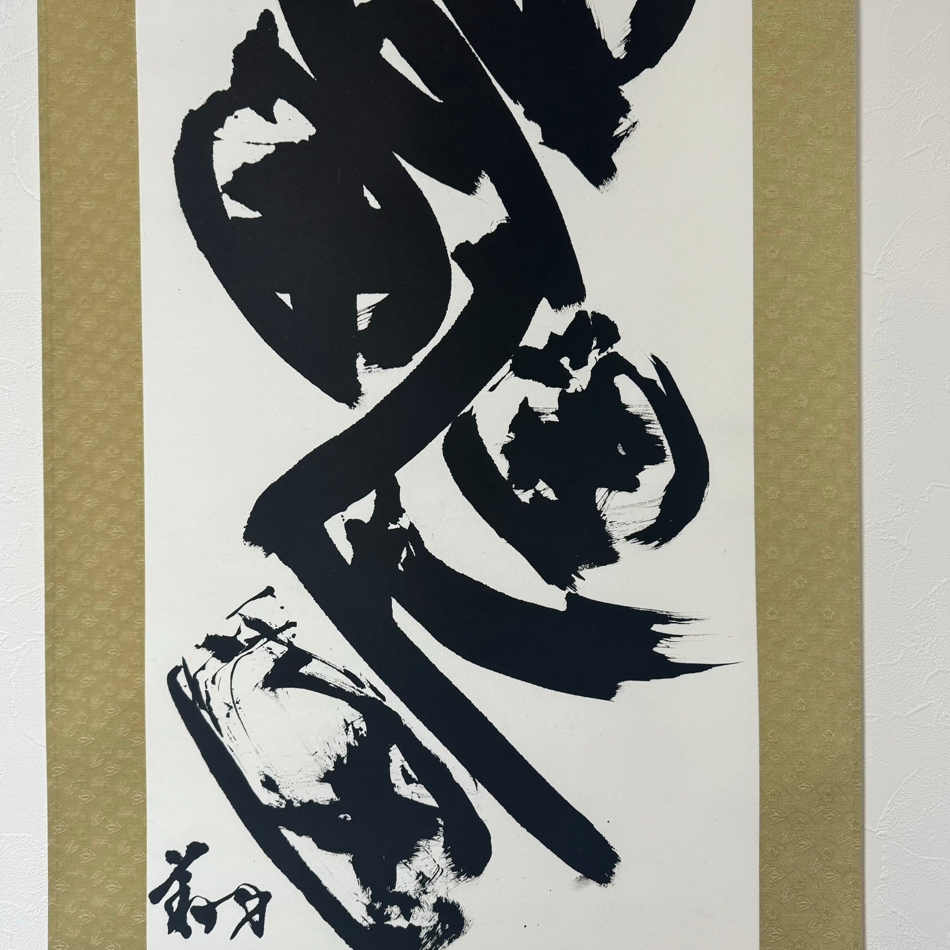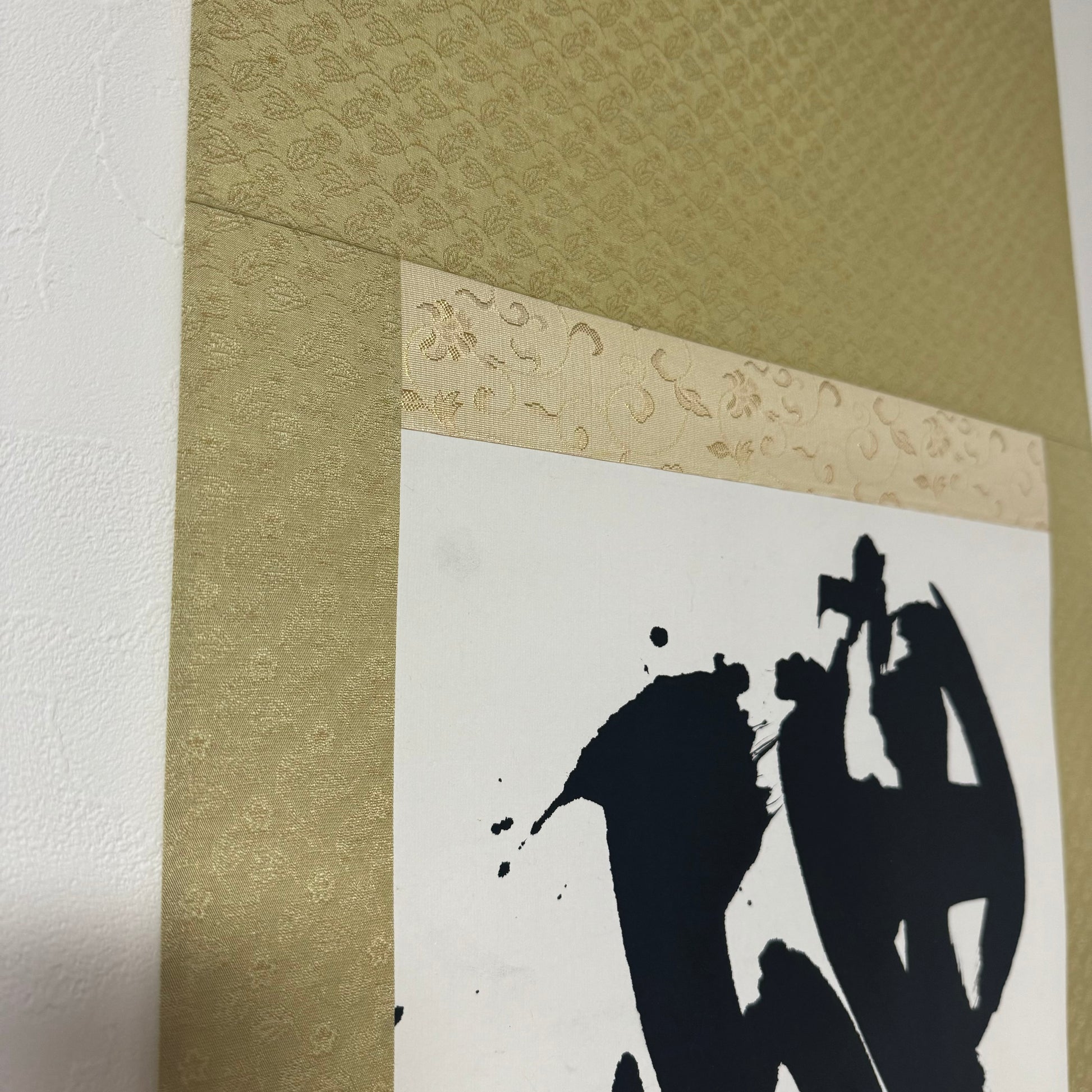 力強い文字と白い余白が美しい作品です。これぞ書、と感じる作品です。是非お気に入りの場所へお迎えください。