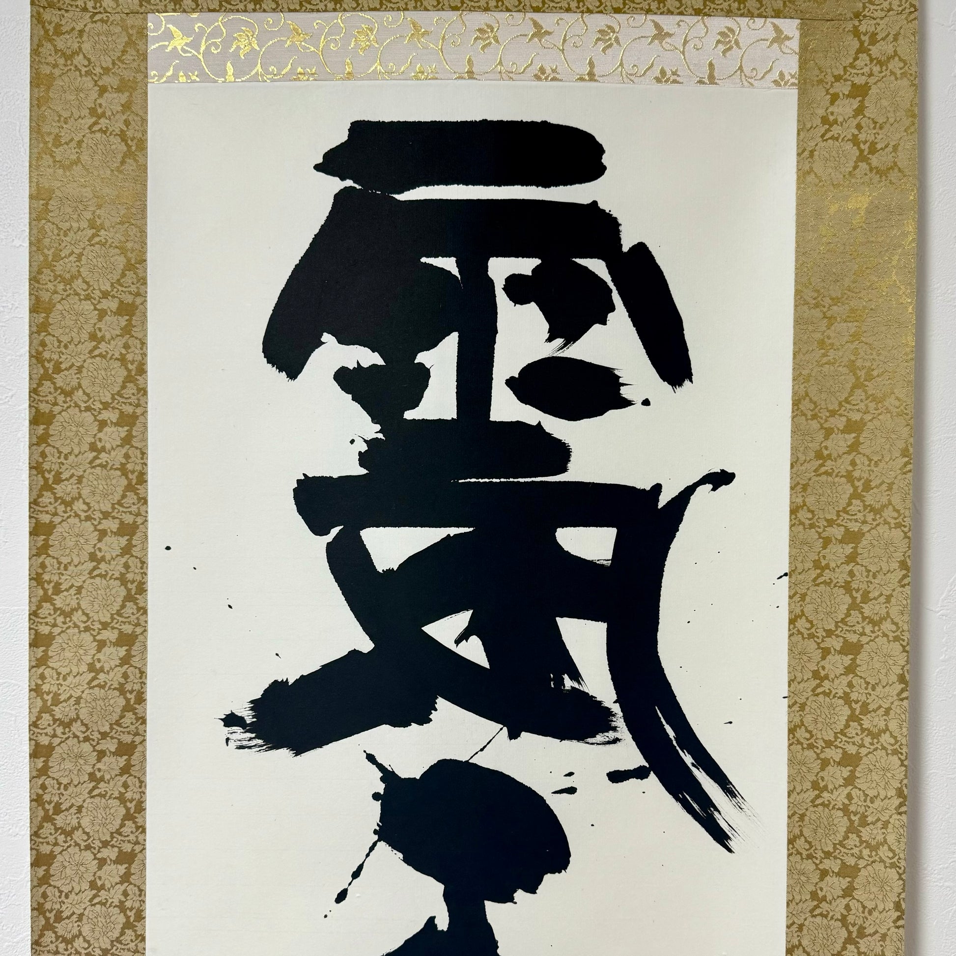 【SIZE】H1975mm×W456mm×D30mm(作品部分 H1355mm×W338mm×D1mm) 【WEIGHT】509g 【作品材料】墨、画仙紙 【作品ストーリー】「震天駭地」〜天を震わせ地を動かす〜という意味です。人工的に作る強さではなく、自然と出る迫力や強さ。というこの言葉に惹かれてこの詩を選びました。 |