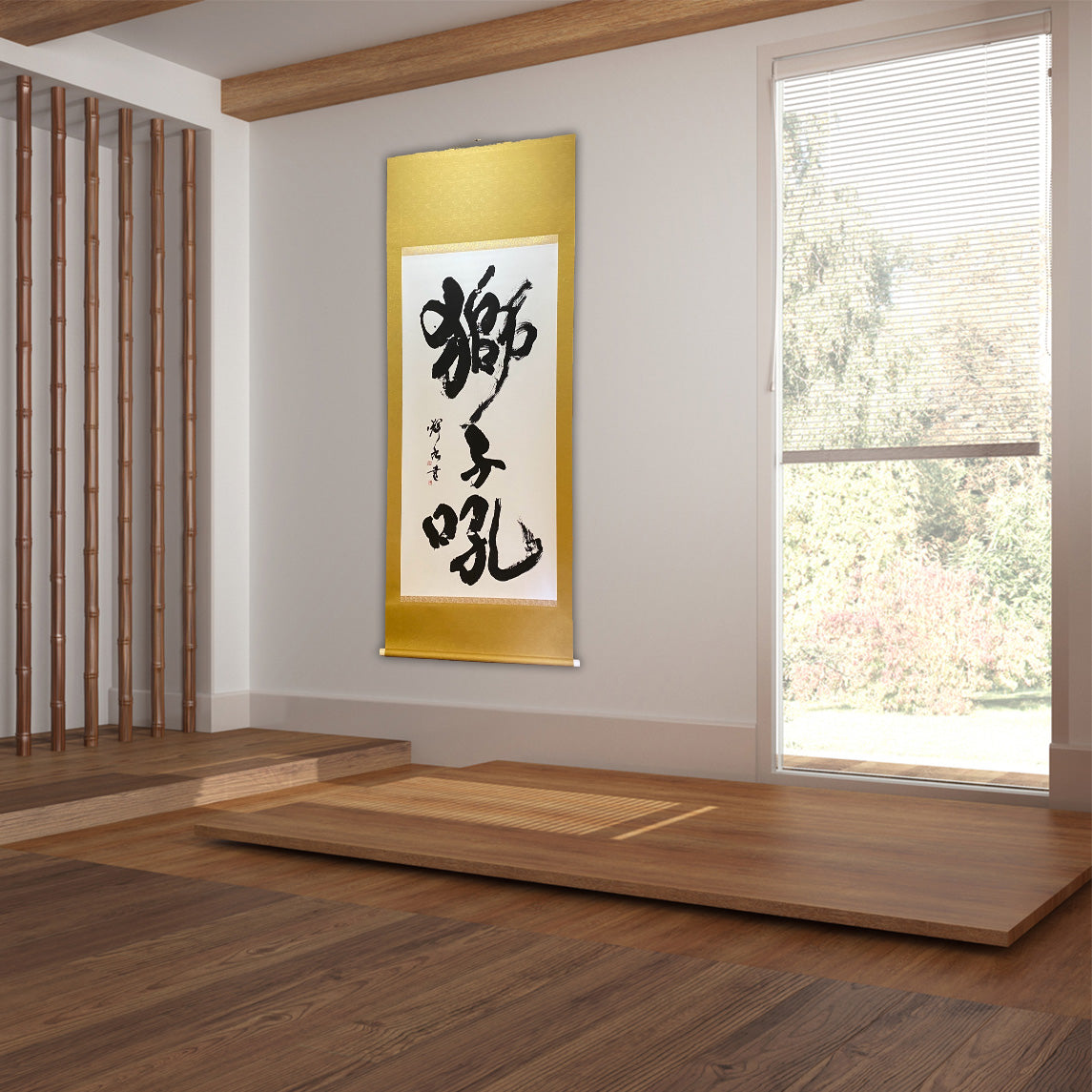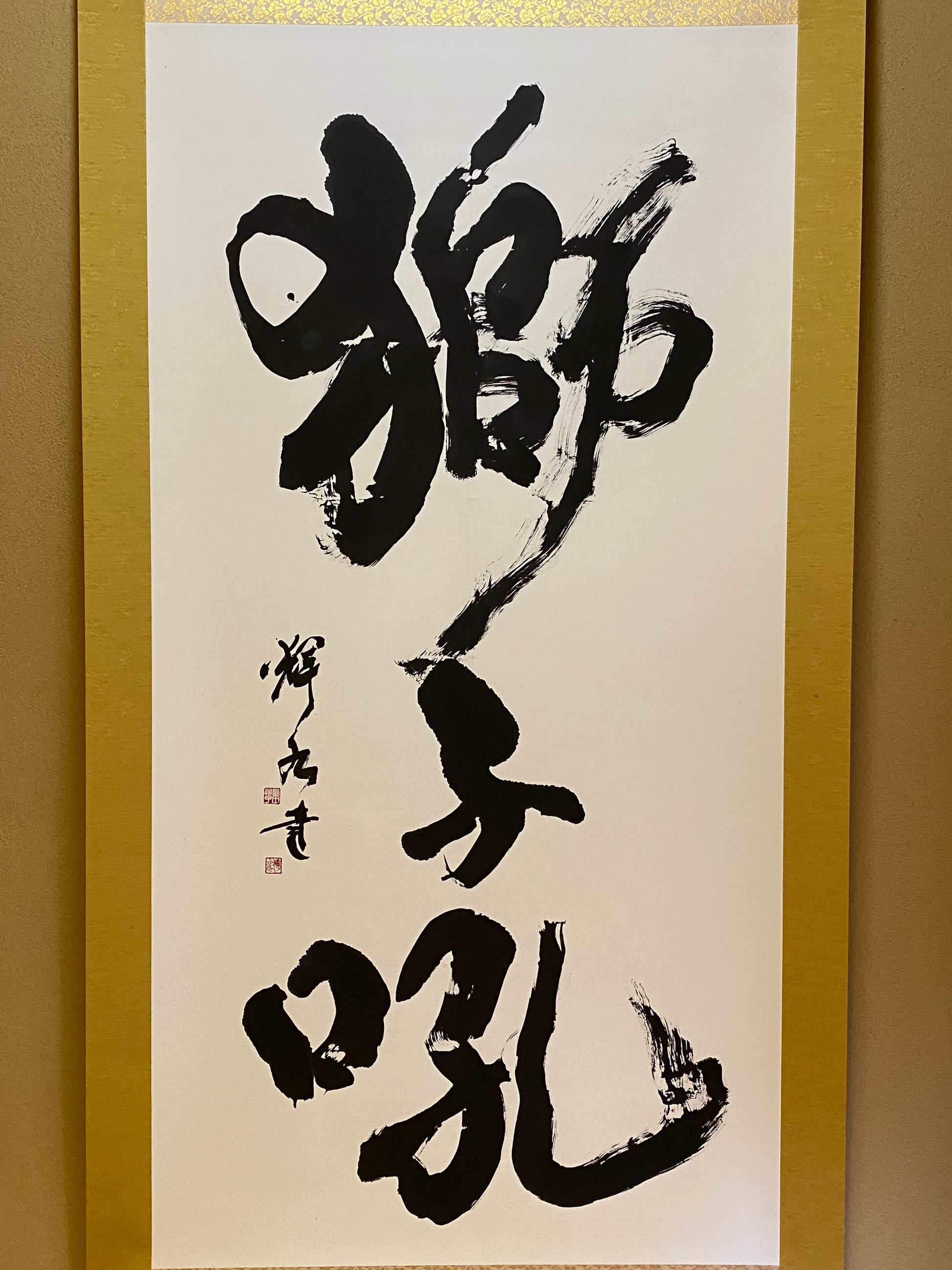 獅子吼は、シシクと読みます。雅な表装と力強い線質から、 獅子の吠える姿が浮かんできます。見る度に、自分の心を奮い立たせてくれるそんな存在の作品はいかがでしょう。