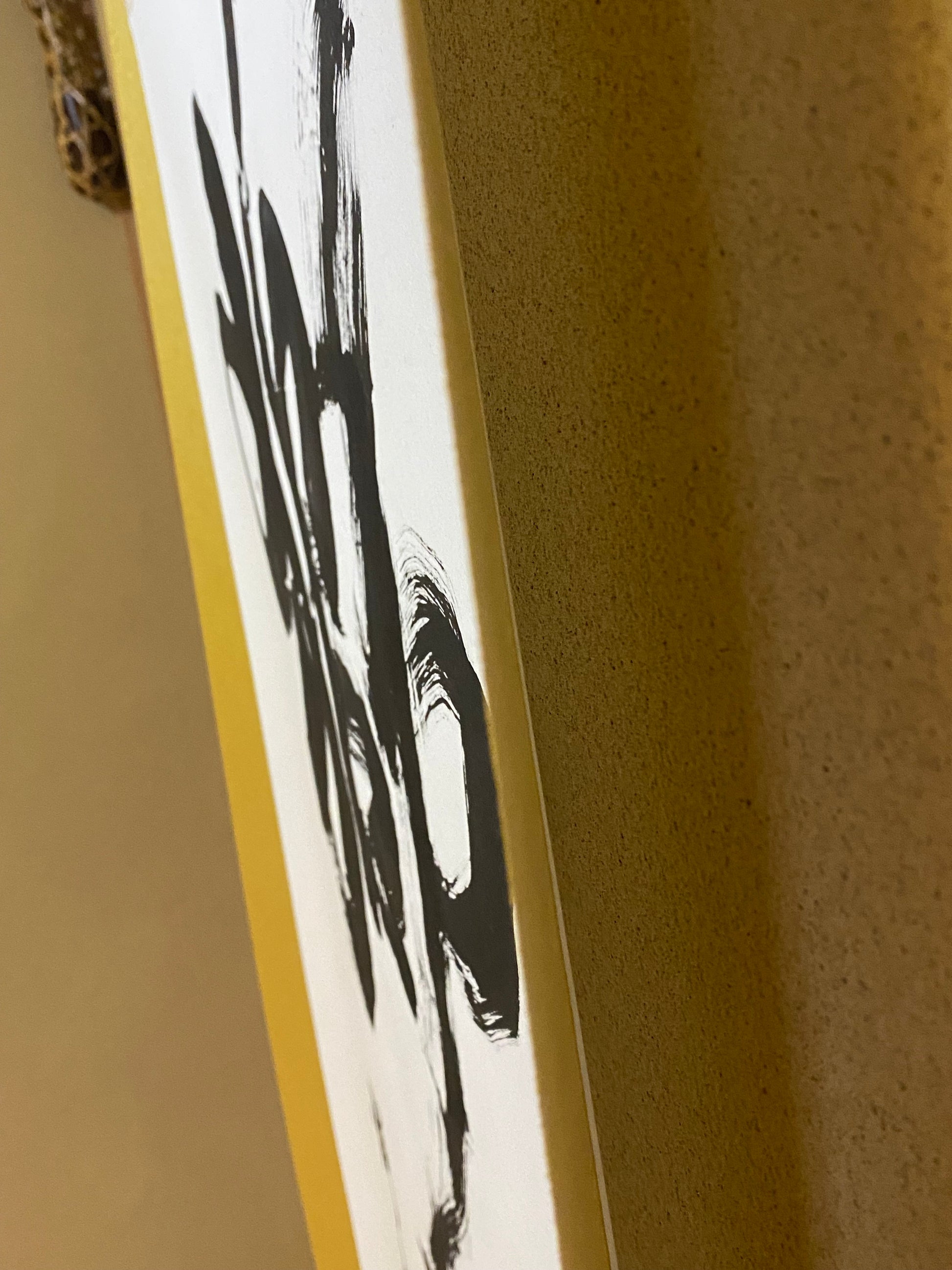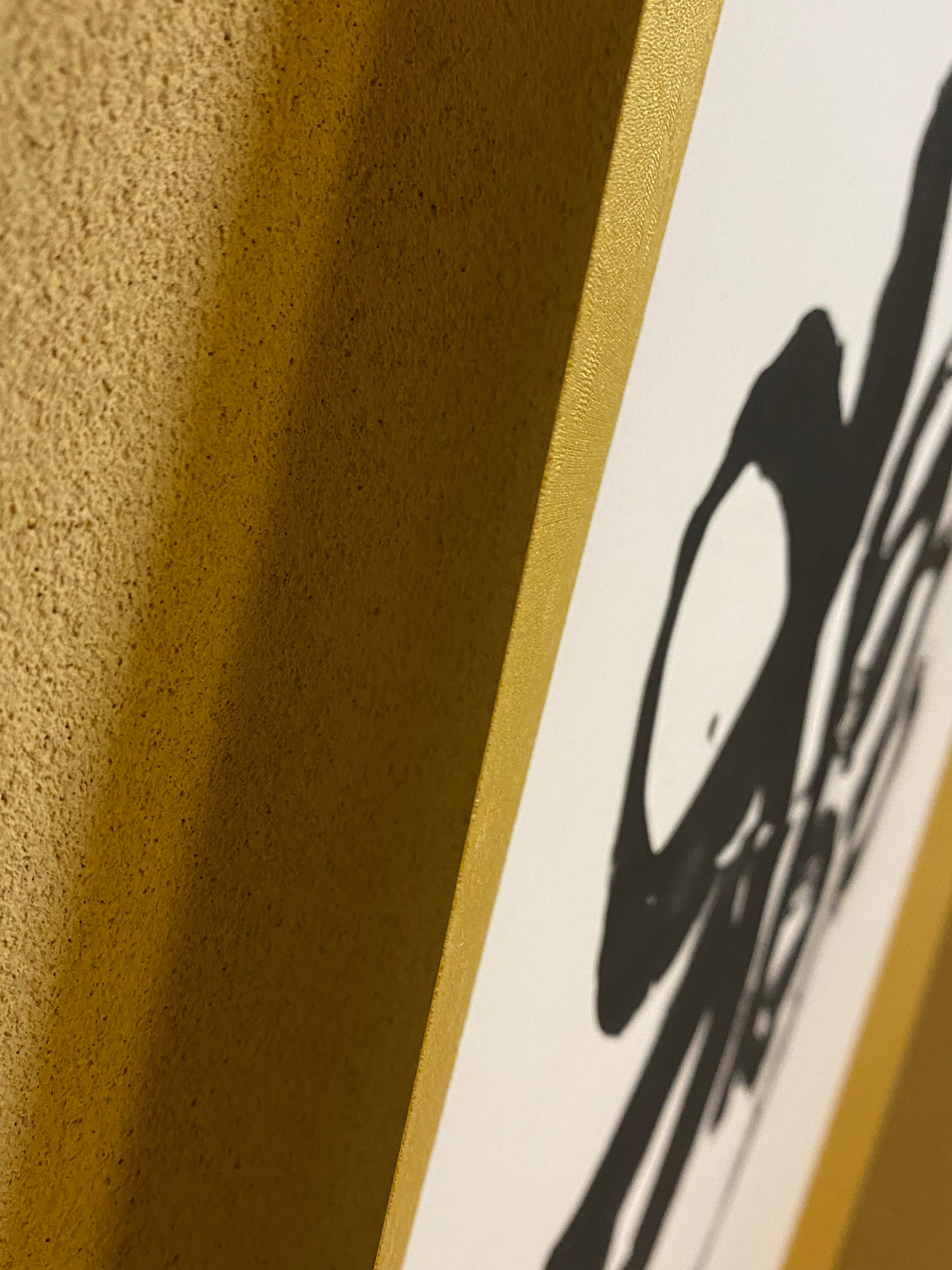 【SIZE】H2000×W840mm×D2mm(作品部分の大きさH1375mm×W696mm×D2mm) 【WEIGHT】576g 【作品材料】 画仙紙 墨 【作品ストーリー】 獅子吼 means that telling an instruction and exhortation with powerful voice as if a lion roars. Also, it means braveness without any fear of other different teachings. 【作品のポイント】 I chose this word, because I wanted a certain core that stands strongly straight inside of myself. 褐筆 (Kappitsu) is the quality of the lines created by left little amount of the ink which expresses dry and dynamic movements. Please enjoy longitudinal dramatic flow of drawn character of "獅”(a lIon) by Kappitsu. |