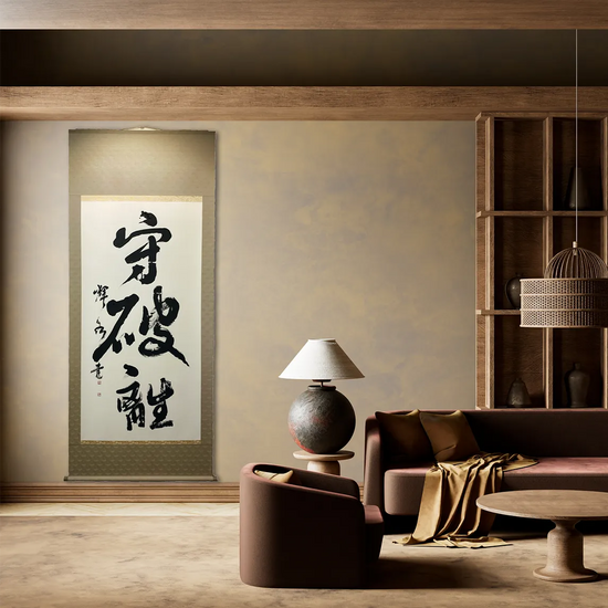 モダンな色合いの掛け軸ですので、場所を選ばずに飾っていただけると思います。