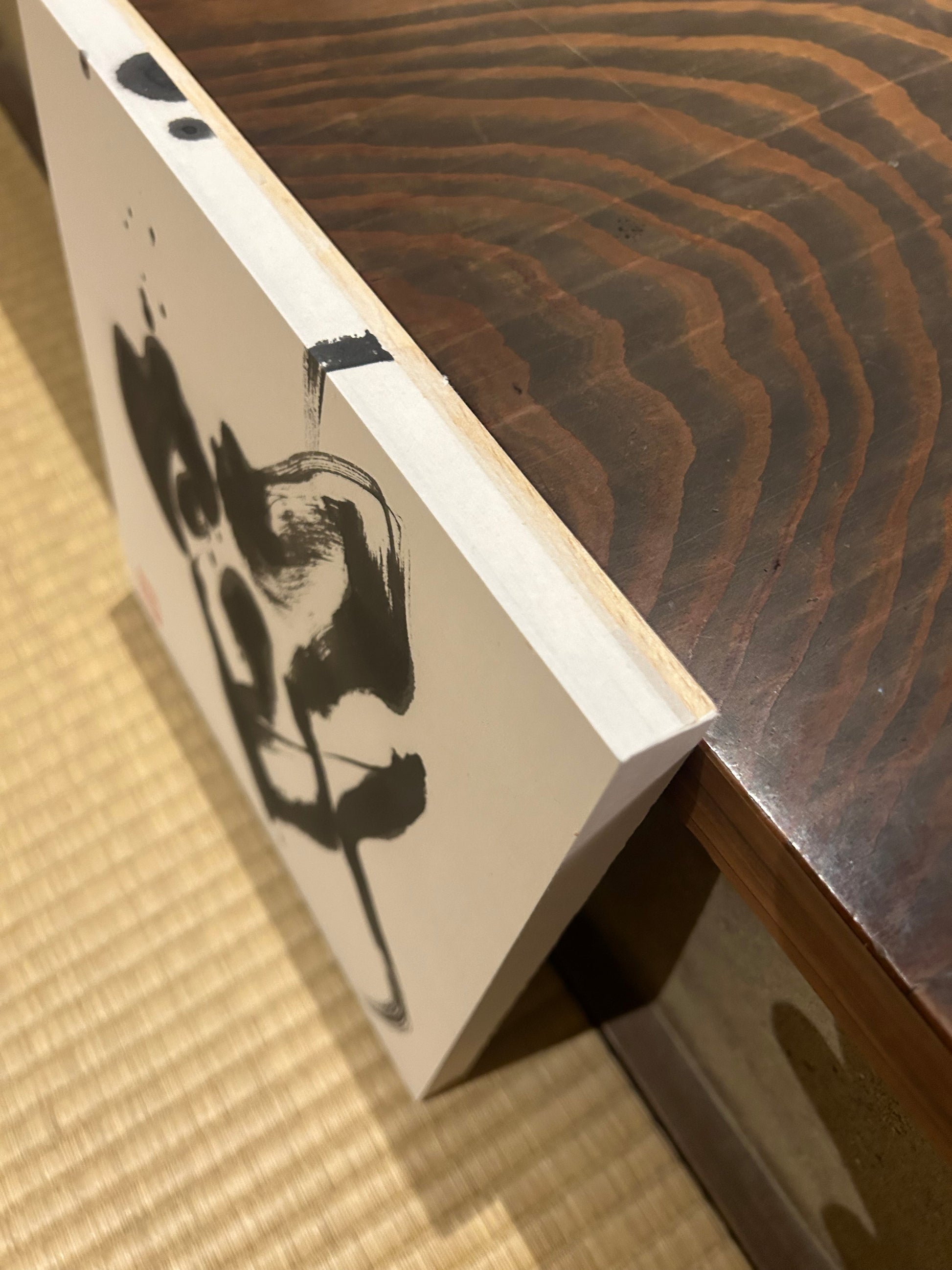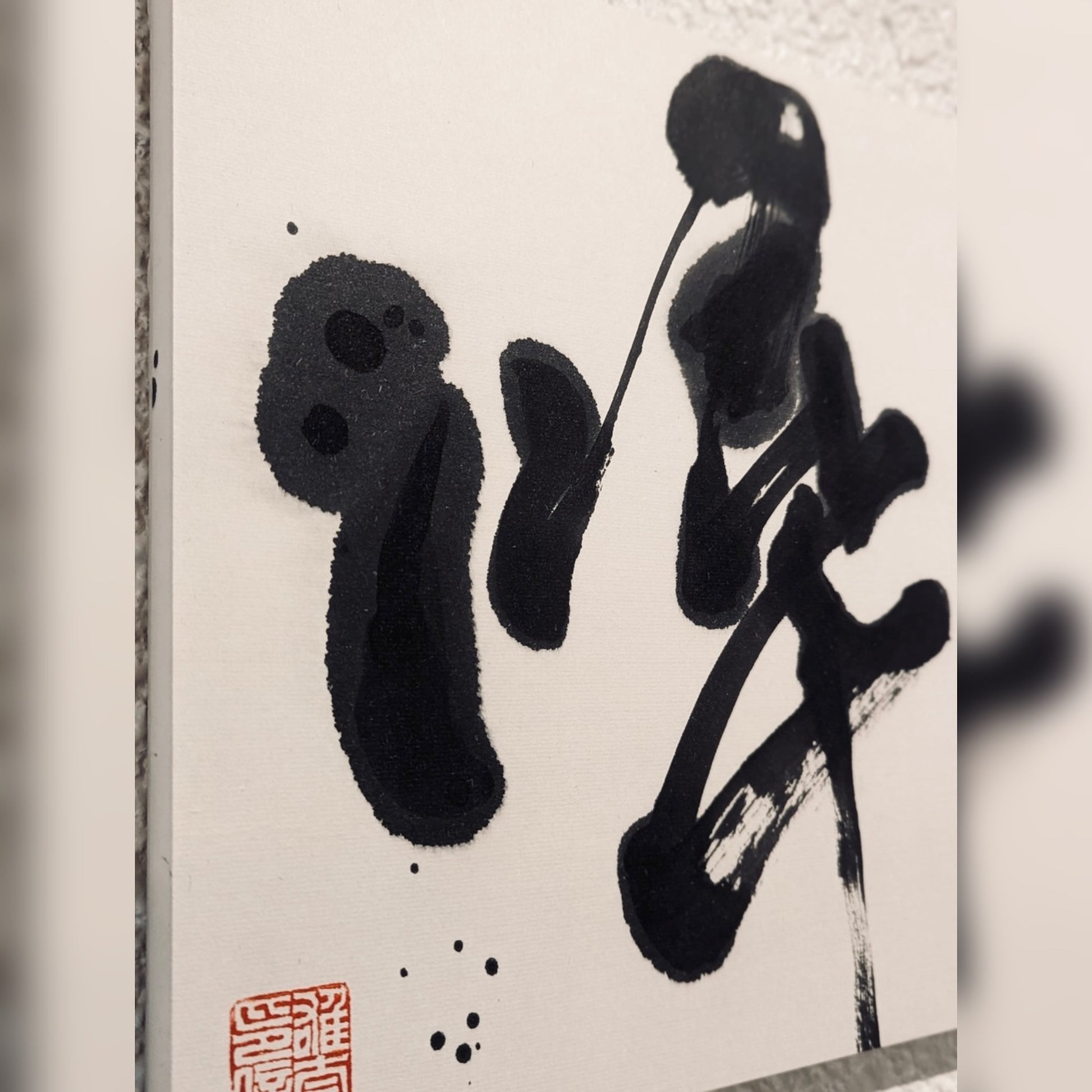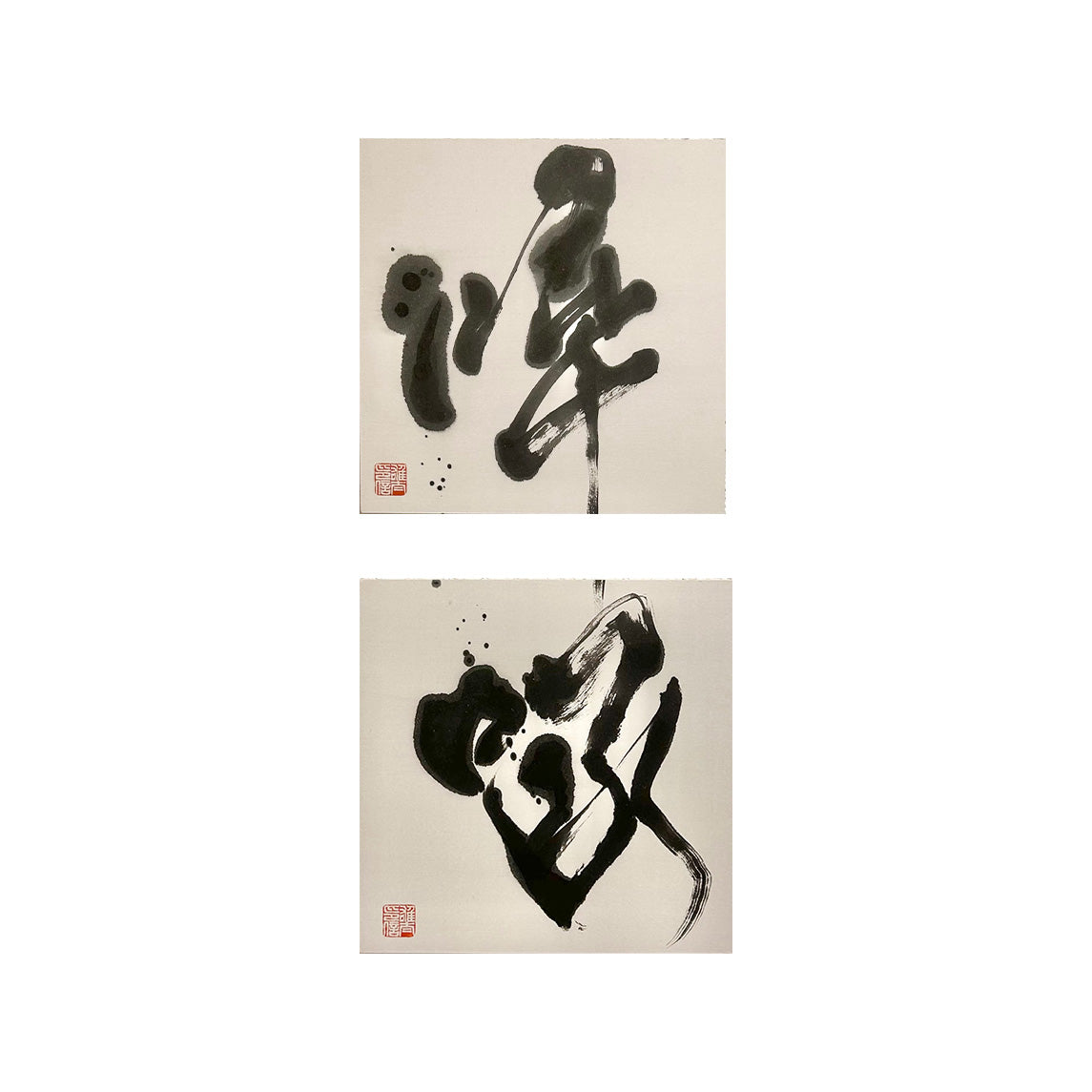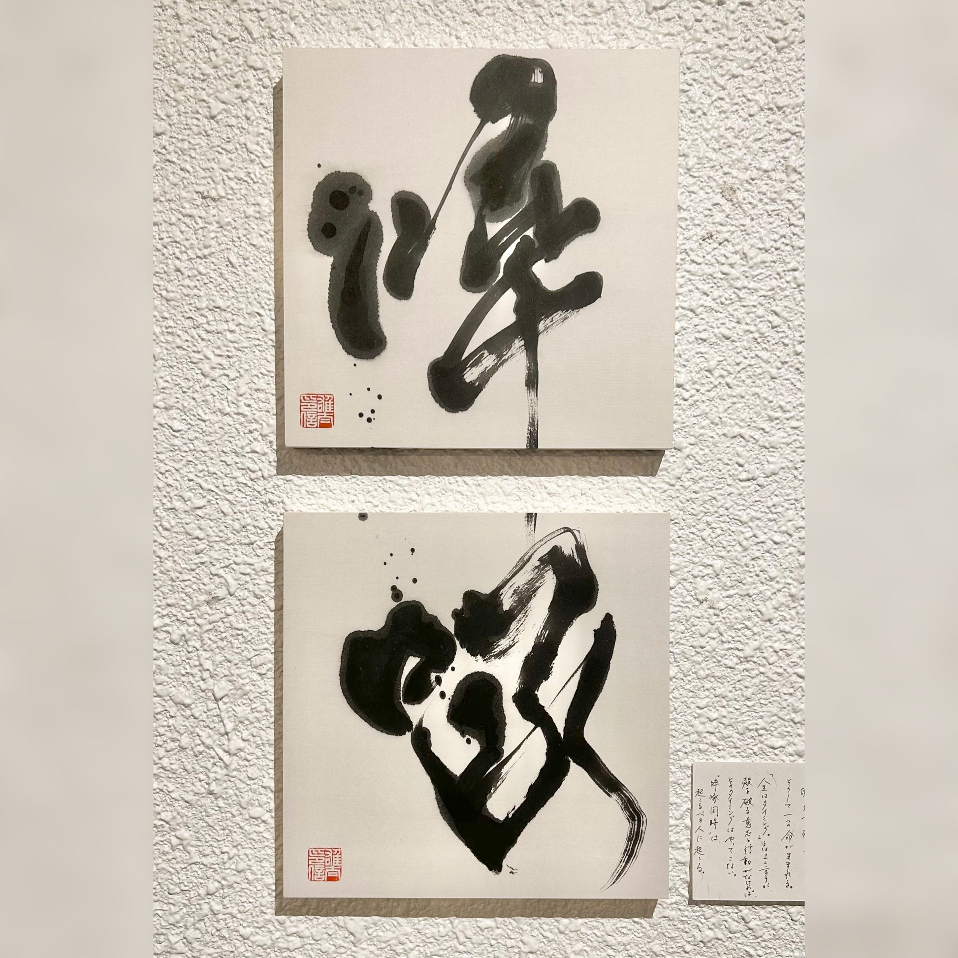 This calligraphy work is one including two calligraphies. Both of them are square and you can enjoy putting them horizontally and vertically.This is one of the reasons for recommending this calligraphy. After putting this work in the space, to tell the stories of this calligraphy work would be one of the delightfulness of owning this work.