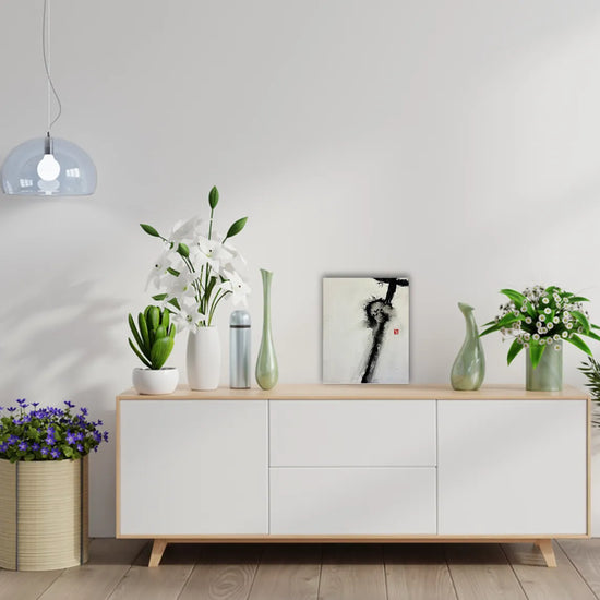 The letter "す” is stretched and forms a long shape like the path of a breath. In modern society, people tend to forget to take a breath, although it is essential to live. Please enjoy putting this piece of work and catch your breath.