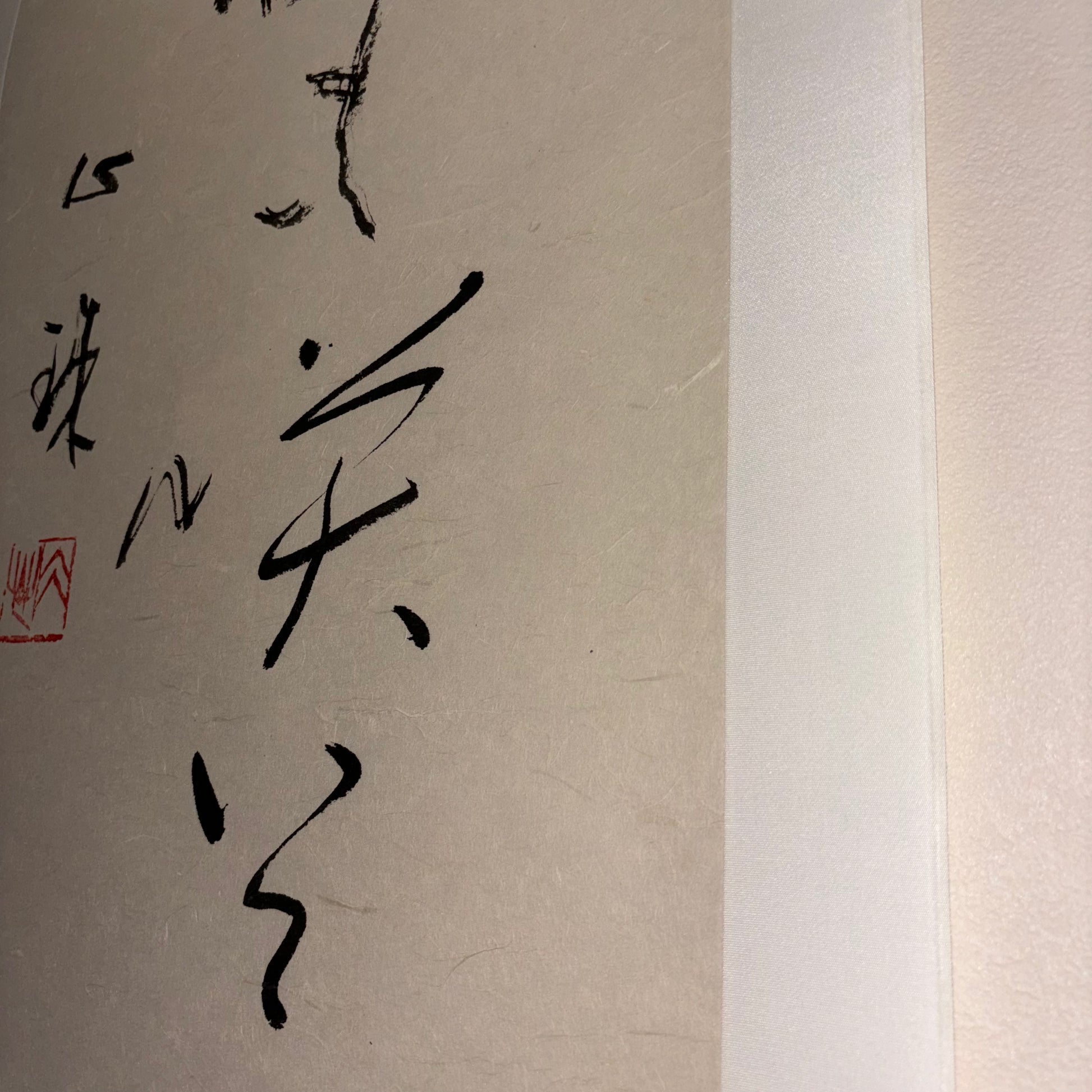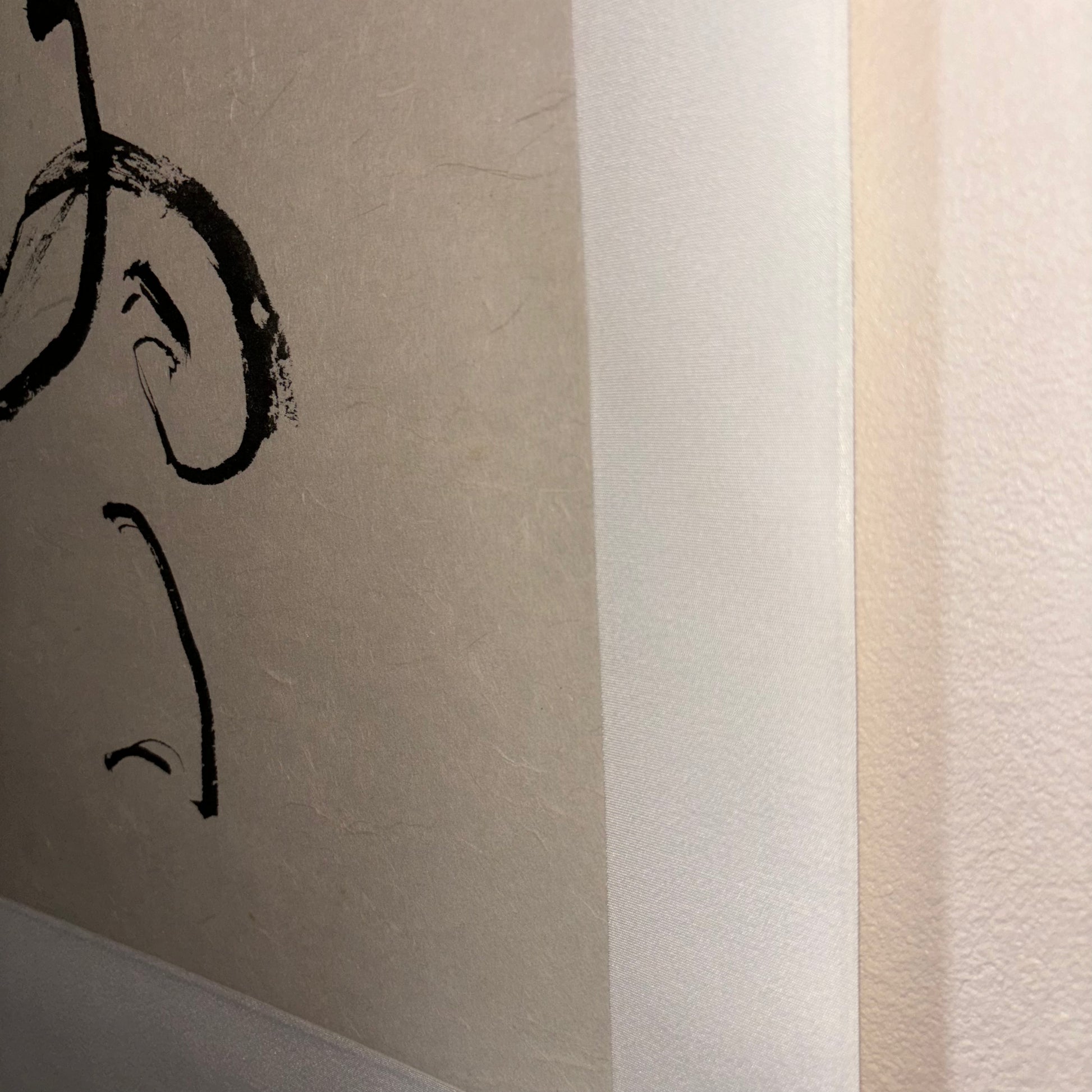 大きめの作品ですが、優しい色合いが印象的です。漢字とひらがなが書かれており線や空間に魅了されます。