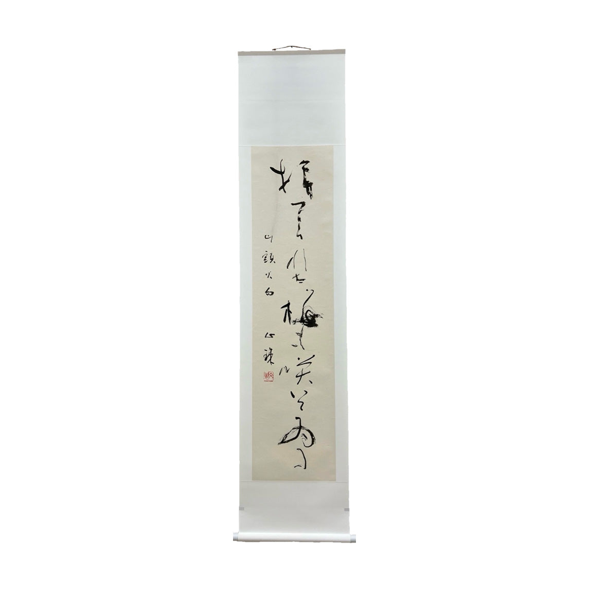 【SIZE】H1935mm×W445mm(作品部分の大きさH1350mm×W350mm) 【WEIGHT】345g 【作品材料】 画仙紙 墨 【作品ストーリー】 "Suterareta Umemo Saiteiru” (The left plum tree flower is also blooming even though it's disposed) I drew this calligraphy imaging the scenery of the poet (haiku) by 山頭火*(Santouka Taneda) vividly, thinking about the disposed plum flower blooming adorably. *Santouka Taneda is known as a Japanese haiku poet. His style is famous for a style of haiku verse called free verse rule. 【作品のポイント】 A brush made of feathers is used. Rich texture of the lines is attractive. |