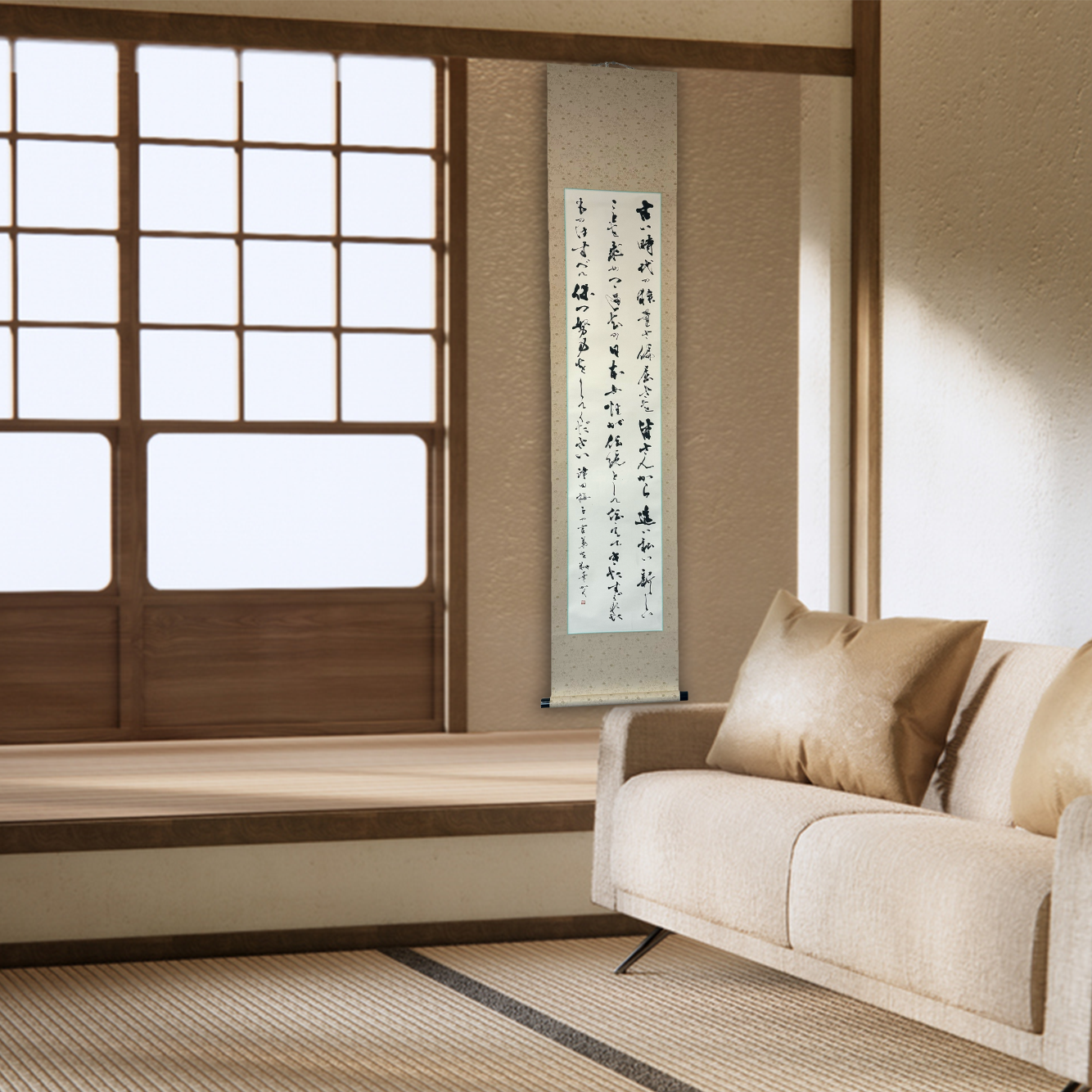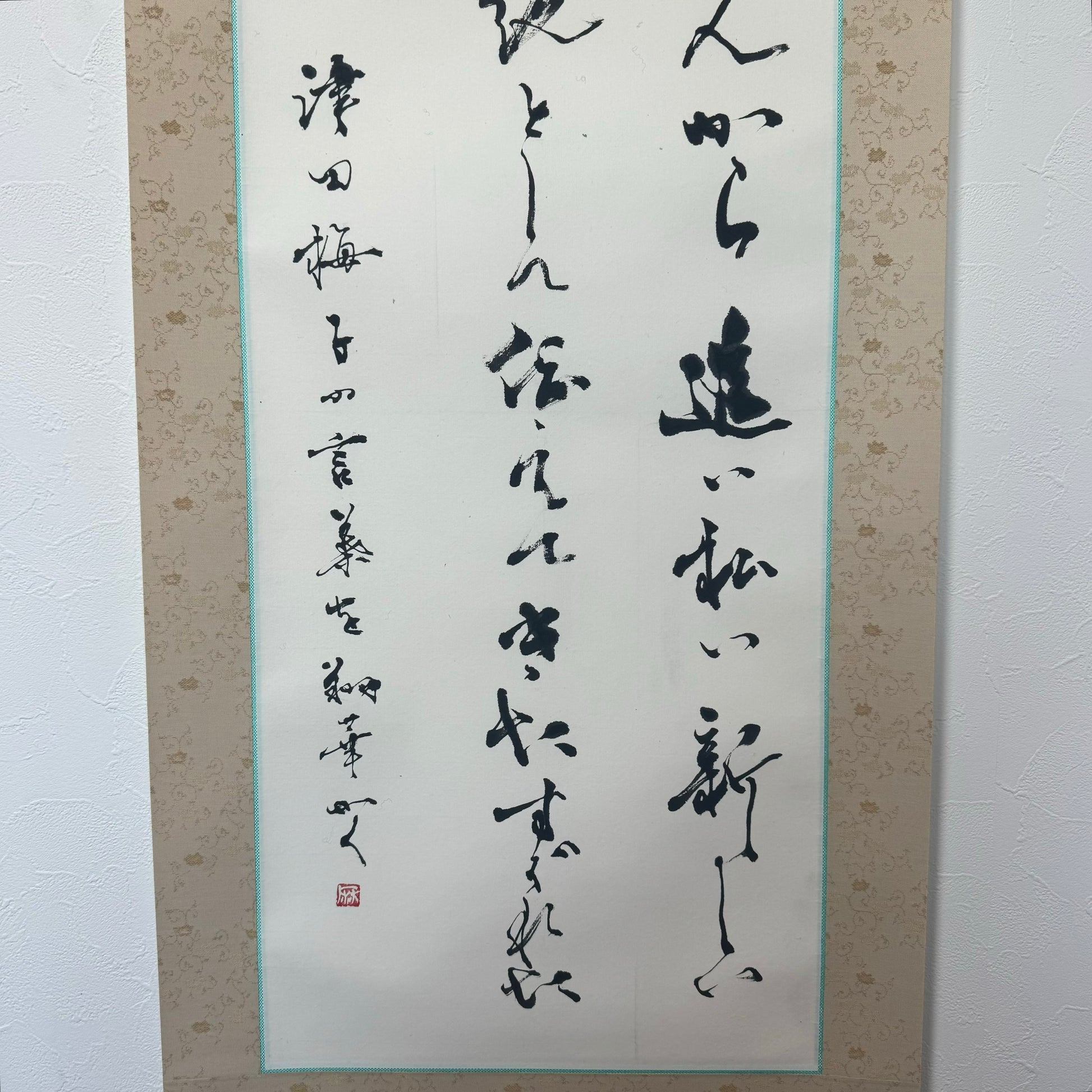 【SIZE】H1945mm×W390mm×D30mm(作品部分 H1366mm×W390mm) 【WEIGHT】424g 【作品材料】墨、画仙紙 【作品ストーリー】 「古い時代の狭量さや偏屈さを皆さんから追い払い新しいことを求めつつ過去の日本女性が伝統として伝えてきたすぐれたものはすべて保つ努力をしてください」 2024年上半期を目処に、お札が二十年ぶりに新しくなります。五千円札の肖像になる津田梅子氏は「女子英学塾」を創設し、「女性教育の先駆者」と呼ばれてきました。強い女性の象徴であり尊敬の念を抱きます。 【作品のポイント】 「過去の日本女性が伝統として伝えてきたすぐれたもの」この言葉にグッと惹かれるものがありました。伝統を重んじながら強い女性であり続けた津田氏の言葉には心動かされます。 |